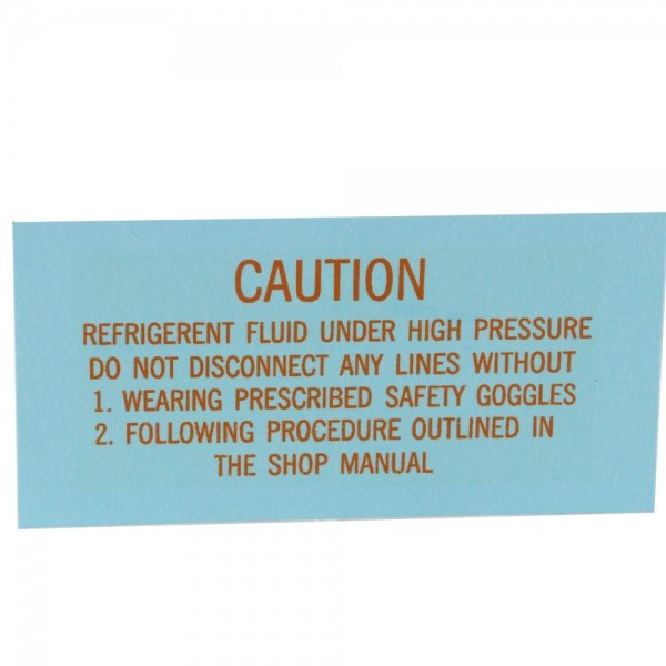 This Corvette reproduction air conditioning compressor warning decal has been manufactured to original factory specifications using today's modern manufacturing techniques. You will find the fit, finish and function will work superbly for your restoration.