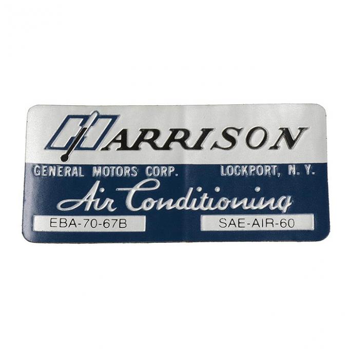 Harrison air conditioning evaporator blower decal, located on firewall.