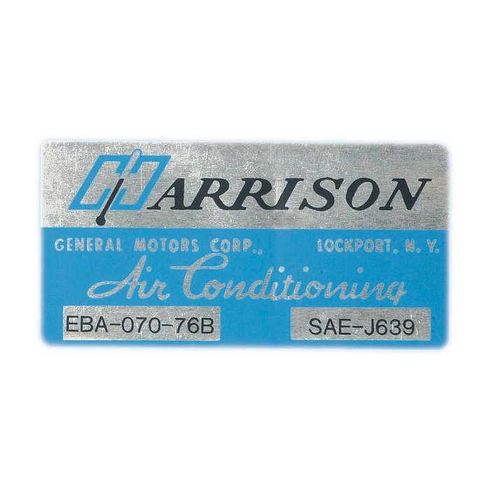 Corvette Decal, Air Conditioning Foil Plate, 1976