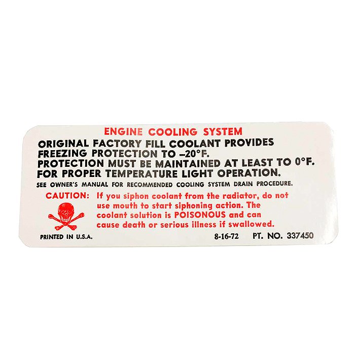 Corvette Decal, Radiator Caution, 1973