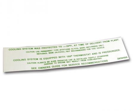 Corvette Decal, Radiator Caution, 1973: