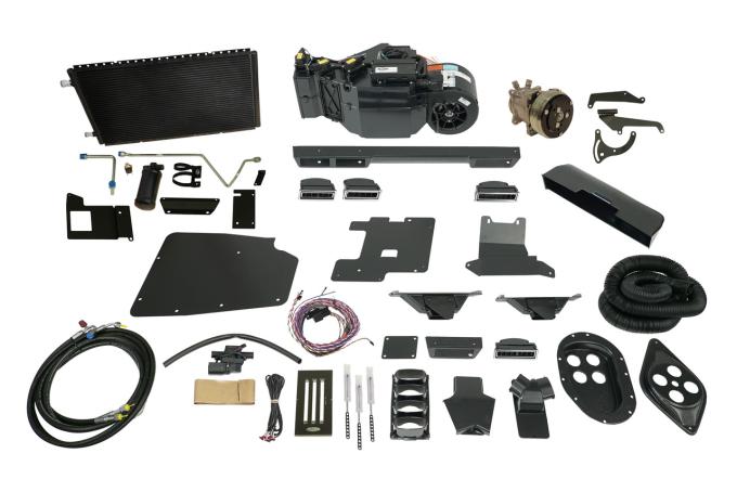 **This complete kit includes everything from the evaporator kit, plus all under-hood components such as the compressor and bracket, condenser with brackets, preformed refrigerant lines, drier, fittings, hardware, and detailed installation instructions.