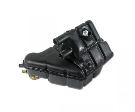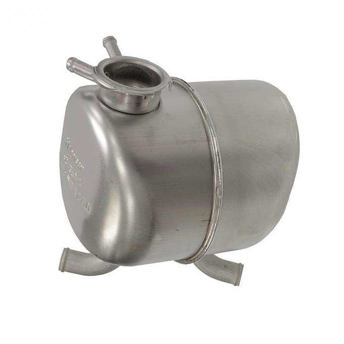 Used on 68-72 small block cars with aluminum radiator. Replacement service surge tank. Welded fittings and no date code.