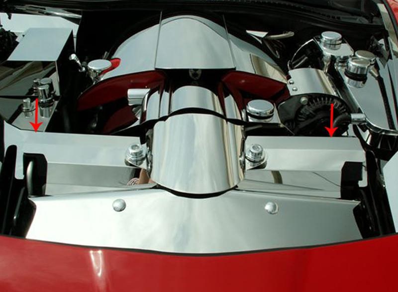 Dress up your Corvette with our polished stainless steel Radiator Cover. These trim pieces are designed to fit all 2005-2007 C6 LS2 Corvettes and 2008-2013 Z06 LS7 Corvettes over the radiator and add a clean stylish look to your Corvette engine bay.