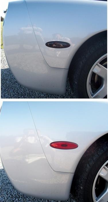 This C5 Corvette molded acrylic side marker kit is the perfect finishing touch to blackout your C5. This kit is made from premium molded acrylic and simply attached with 3M clear tape. Installation takes less than five minutes for the set. These C5 Corvette side marker blackouts are not cheap film, they are molded from acrylic. (Hard plastic).