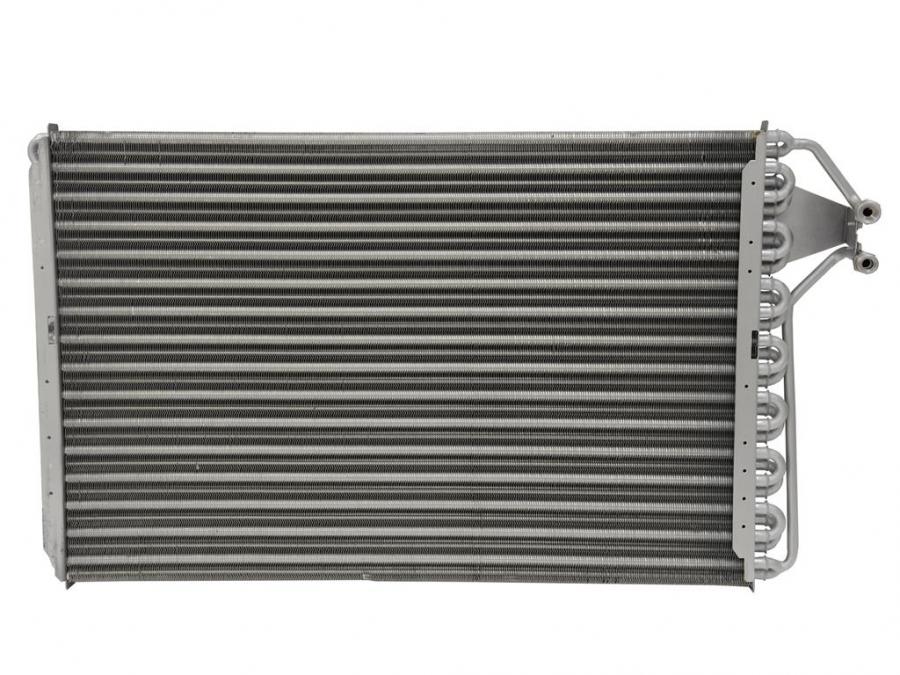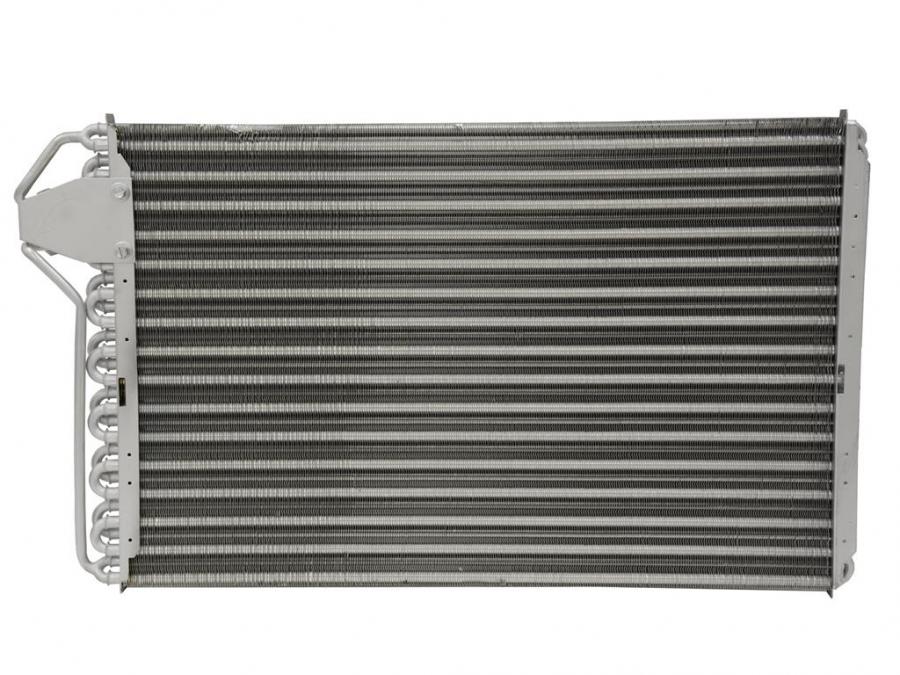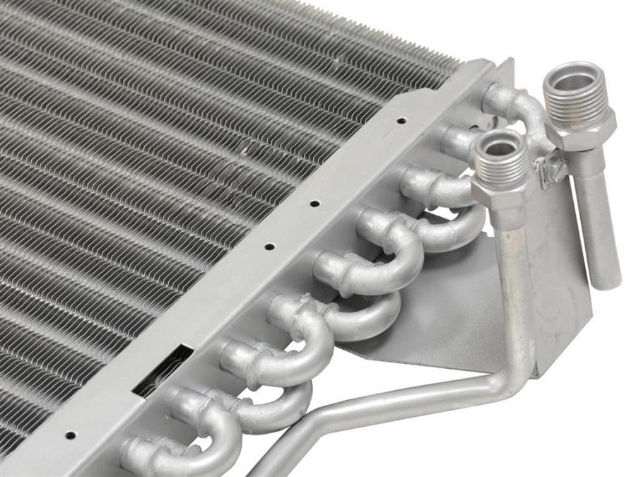 The air conditioning condenser is a radiator positioned between the car's grille and the engine cooling radiator. The refrigerant enters the condenser as a high-pressure vapor, but as it flow through the condensor and cools, it turns back into a cooler high-pressure liquid. The liquid refrigerant then flows to the evaporator inside the dash where it cools the interior.