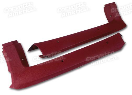 Replace those old pillar post moldings on your prized 1977-1982 Corvette. Pillar post moldings which are usually scratched, broken or otherwise destroyed because of their location near the windshield. Over time the sun bakes the pillar post moldings through the windshield making them very brittle and a eye sore for your Corvette.