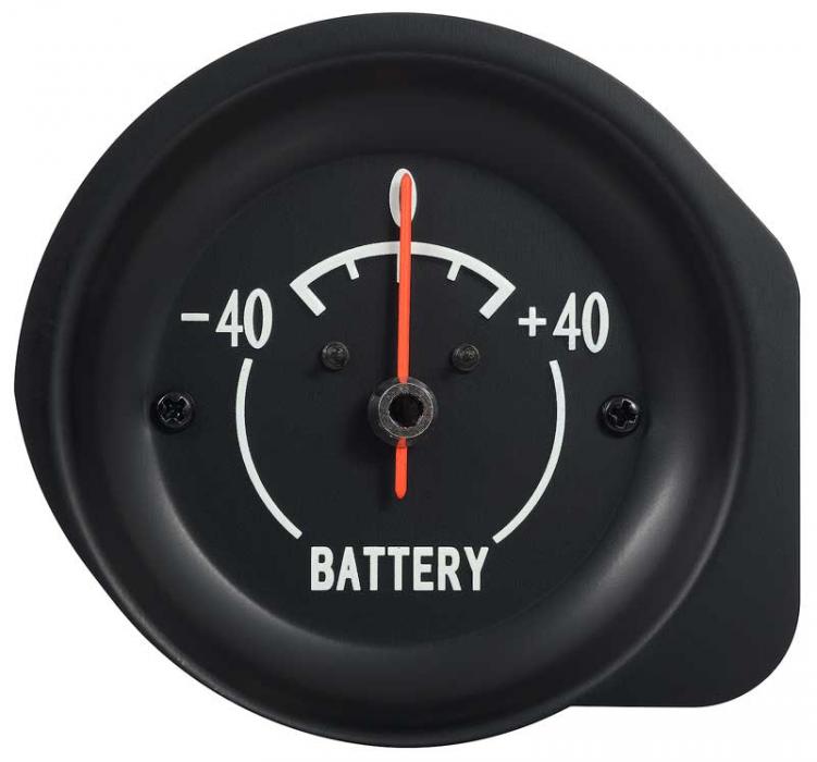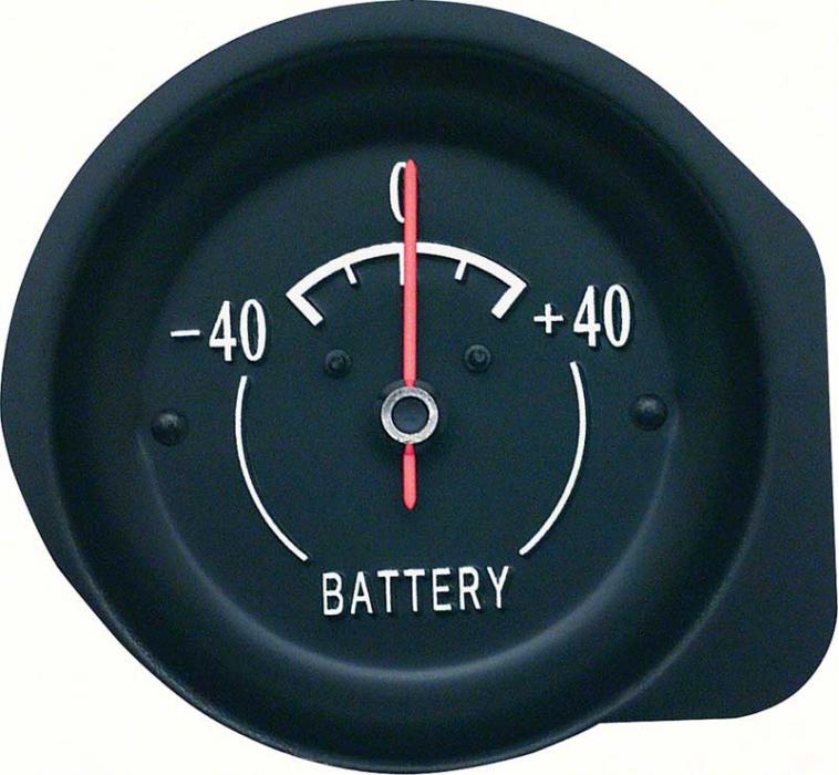 Reproduction of the original instrument cluster battery/ammeter gauge designed for use with 1972-74 Chevrolet Corvette models. Each gauge is manufactured to original factory specifications featuring correct white markings that match the existing gauges.