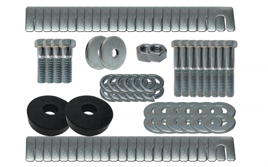 This body mounting kit contains all mounting bushings with all hardware included. It is correct S.B.R. compression molded with steel sleeve inserts. Bushing are made of high grade non recycled rubber.