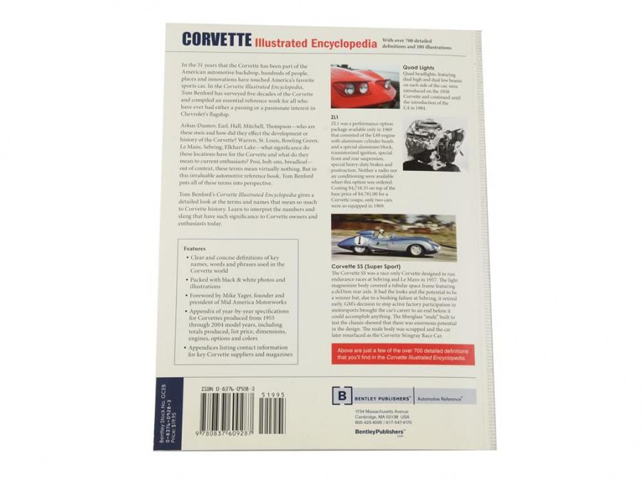 Corvette Illustrated Encyclopedia gives a detailed look at the terms and names that mean so much to Corvette history. Learn to interpret the numbers and slang that are the code of Corvette. Appendix of year-by-year specifications for Corvettes produced from 1953 through 2004 model years, including totals produced, list price, dimensions, engines, options and colors. Soft cover, 7 in. x 9 in. 300 pages, 180 black and white photos and illustration.