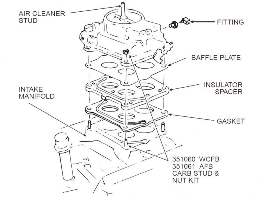 56-72 WCFB / AFB / Holley Carburetor Mounting Studs to Intake with Nuts
