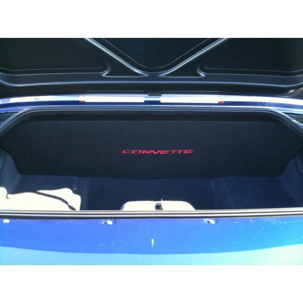 Make your fixed roof coupe/hardtop or convertible a more enjoyable car to drive, install the "Quiet Ride" Compartment Divider. The one-piece unit is charcoal gray and made of high-density, sound absorbing 2-1/2" foam and covered on both sides and edges with black carpet and "Corvette" word.