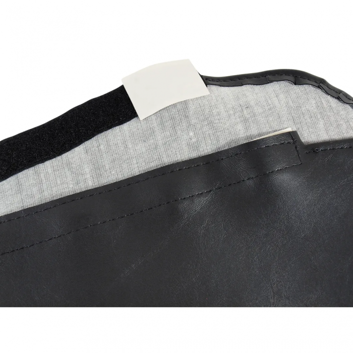 It seems the designers, failed to realize that any cargo thrown into the trunk, with the soft top retracted, could cause damage to the convertible top. The trunk curtain is made of a durable medium gauge vinyl contoured to fit this application separating any cargo from the convertible top. A 1/2 inch strip of Velcro (hook) tape is stitched across the entire upper edge of the curtain. Four Velcro (loop) strips with adhesive backing are provided to attach strategically to the inside 1 inch facing lip of the trunk. This allows for easy installation and removal.