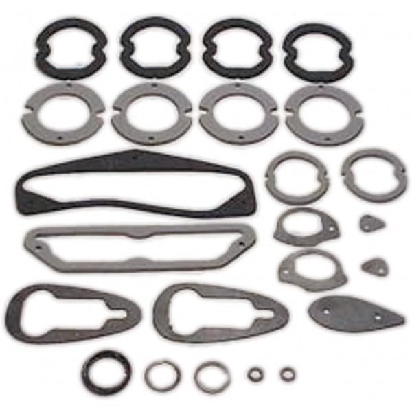 This kit includes all the common body-mounted component seals that you'll need to replace after repainting your car. Precisely die-cut from the correct materials, these seals will fit perfectly just like the originals.