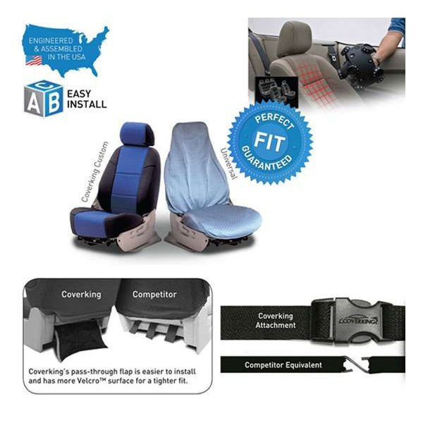"The seats in your C5 Corvette are subject to tremendous wear and tear. They are expected to deliver comfort, safety, and durability. Over time, your seats can become dingy, stained, faded, worn, even torn. Alcantara is a durable fabric made from a unique blend of polyester and polyurethane that is specially woven to create a soft and luxurious feel. Used in select C7 Corvette Stingrays and high end European luxury & sports cars, Coverking Alcantara seat covers are perfect for outfitting your Corvette with style and elegance. We have combined center panels of this luxurious material with our well-dressed yet tough leatherette for a truly unique look. Our Alcantara seat covers are soft to touch like suede yet durable like leather. They combine exceptional durability & stain resistance with a luxurious look and feel. After installation, long trips will be far more fun because of the extra soft cushioned insulation. Because the center is warm in the winter and cold in the summer, they're ideal no matter where you live. They are precision engineered, CNC cut, and professionally sewn for a perfect fit and they include airbag cutouts. Installation is as as slipping over your existing seats. You can trust Coverking because they are made in the USA and backed by a solid 1-year manufacturer's warranty. True Custom Patterns: All of our covers are digitally scanned using 3D-imaging equipment to produce a true custom fit. We also have the largest collection of patterns for all make and models. Our engineers spend weeks refining and perfecting patterns specifically for your seats. Each custom pattern is tested for precise fit and durability. The design process is a art-form - we have to balance and make sure the covers are easy to install while creating the best possible fit possible. All of our patterns are engineered to meet this goal. The Coverking Advantage: Same high quality material all around the seat with no substitution in material. Primary material on all surfaces (competitors have very thin, almost transparent, fabric on sides and back) High quality buckles, zippers, and larger pull-through flaps for easy install, secure fit, and long life. We add extra material fabric underneath tight areas to prevent tearing"