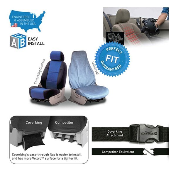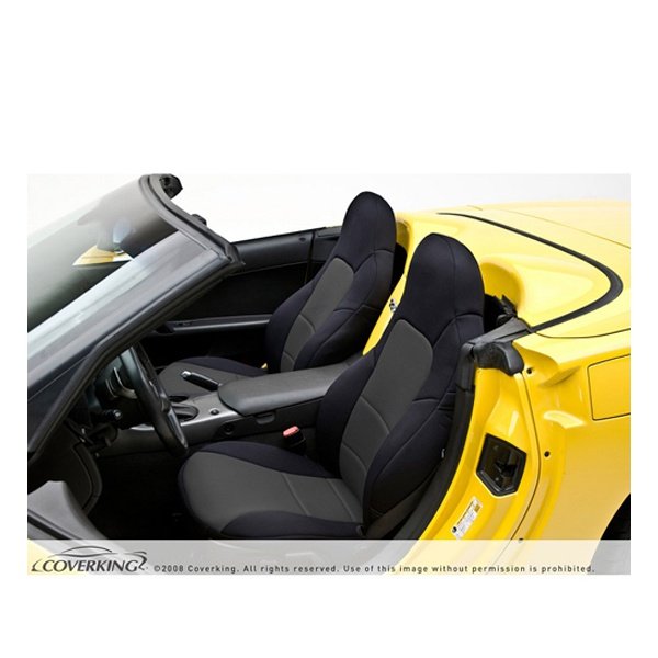 "The seats in your C5 Corvette are subject to tremendous wear and tear. They are expected to deliver comfort, safety, and durability. Over time, your seats can become dingy, stained, faded, worn, even torn. Eckler's Corvette offers the ultimate solution: Coverking Neoprene slip over seat covers. Our CR-Grade Neoprene custom seat covers are made from the same quality material used in high-end wetsuits or divesuits. These covers are extremely water resistant and very durable. Each cover also has a soft and cushioned feel while displaying a sporty design. Coverking Neoprene custom seat covers covers are the best fitting seat covers you can find in the market. They provide improved durability, seat protection, and increased driving comfort. After installation, long trips will be far more fun because of the extra soft cushioned insulation. Because they are warm in the winter and cold in the summer, they're ideal no matter where you live. They are precision engineered, CNC cut, and professionally sewn for a perfect fit and they include airbag cutouts. Installation is as as slipping over your existing seats. You can trust Coverking because they are made in the USA and backed by a solid 1-year manufacturer's warranty. Trust Eckler's Corvette for all your C5 1997, 1998, 1999, 2000, 2001, 2002, 2003, and 2004 Corvette accessory, restoration, and performance part needs. True Custom Patterns: All of our covers are digitally scanned using 3D-imaging equipment to produce a true custom fit. We also have the largest collection of patterns for all make and models. Our engineers spend weeks refining and perfecting patterns specifically for your seats. Each custom pattern is tested for precise fit and durability. The design process is a art-form - we have to balance and make sure the covers are easy to install while creating the best possible fit possible. All of our patterns are engineered to meet this goal. The Coverking Advantage: Same high quality material all around the seat with no substitution in material Primary material on all surfaces (competitors have very thin, almost transparent, fabric on sides and back) High quality buckles, zippers, and larger pull-through flaps for easy install, secure fit, and long life We add extra material fabric underneath tight areas to prevent tearing"