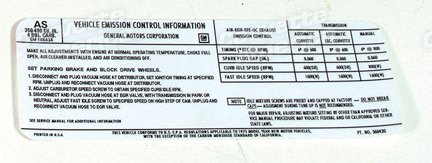 Corvette Decal, Emission L48, 1975