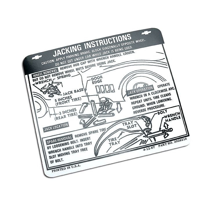 Corvette Decal, Jacking Instruction, 1968-1972: