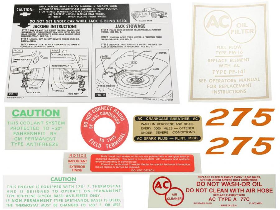 61 Decal Set - 275 Horsepower - 9 Pieces: