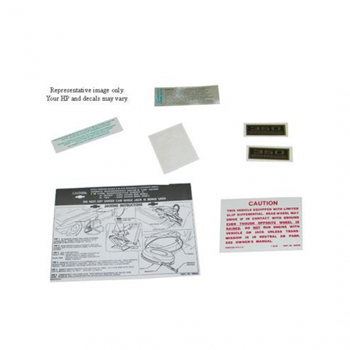 Corvette Decal Set, 300HP with Knock Off Wheels 9 Piece, 1963-1965: