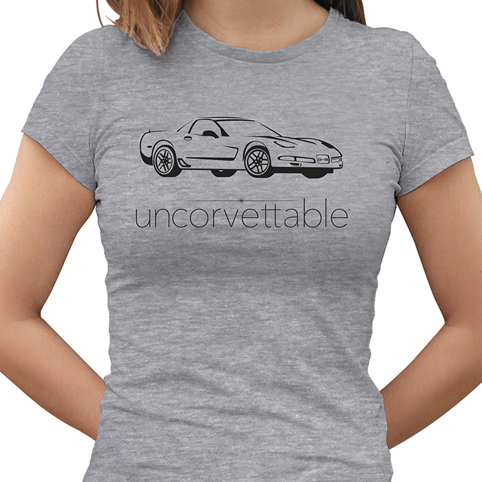 Corvette Depot "Uncorvettable" Ladies Tee, with 5th Generation Corvette, Heather Gray: