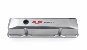 Get rid of those boring old valve covers and put on a set of GM-licensed, die-cast aluminum Chevrolet valve covers from Proform. These premium covers feature stout die-cast aluminum construction with thick gasket rails to resist unwanted oil leaks. They are equipped with internal oil drippers and GM-designed baffles, so you can be sure they'll work well. The covers have recessed Bowtie and Chevrolet logos that are inlaid with classic Chevrolet red. They're available in your choice of chrome plated, black crinkle, or polished finishes.