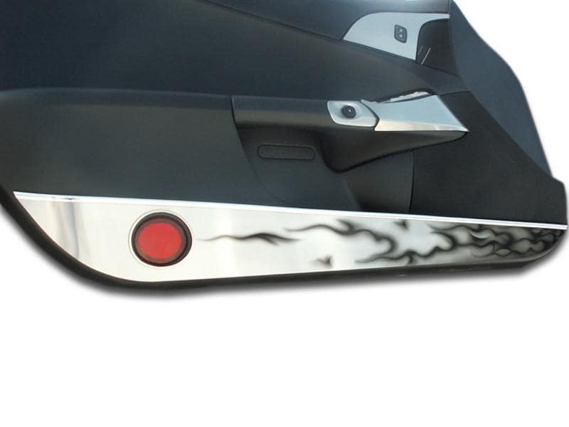 Dress up your Corvette with our Brushed - Stainless Steel, Door Guards with Flame graphics. These trim pieces are designed to fit all 2005-2013 Corvettes on the inner door panel and add a clean stylish look to your Corvette interior. Compliments our Door Sport Fade Flame Graphics - 042029.