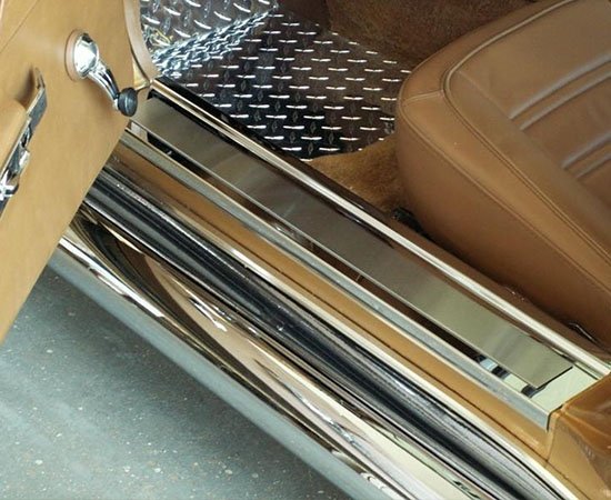 Dress up your Corvette with our Premium Stainless Steel C3 Corvette Door Sill Plates. These trim pieces are fabricated with a polished stainless steel base and topped off with a brushed stainless accent plate. Fits all 1968-1977 C3 Corvettes over the stock doorsill and add a clean stylish look to your Corvette interior.