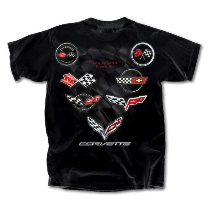 Get ready to rev up your style with this t-shirt decked out with a collection of iconic Chevrolet Corvette emblems and logos. If you're a Corvette enthusiast, this tee is a must-have to show your passion for speed and style!