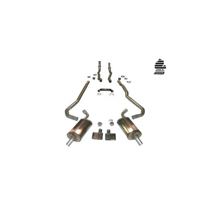 1957-1974 2" exhaust heat riser valve (Excluding FI)1957-1974 2" exhaust heat riser gasket1970-1972 stainless steel exhaust extension1968-1972 muffler hanger with hardware1968-1972 2 1/2" magnaflow muffler1968-1974 2- 2 1/2" 4 speed SB front exhaust pipe1968-1974 2 1/2" 4 speed intermediate pipe1964-1977 2 1/2" Center Exhaust Hanger BracketMagnaFlow's Wide Open Performance Mufflers outflow OEM chamber style mufflers by as much as 167 percent. This reduces engine heat and backpressure and improves exhaust scavenging from the combustion chamber. MagnaFlow minimizes the power robbing effects of the OEM system to restore torque and horsepower to the engine.