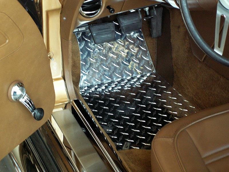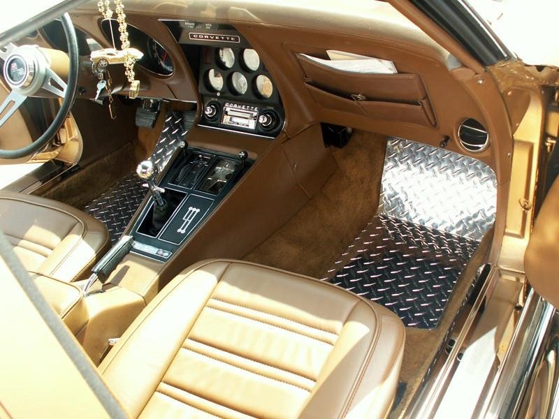 Dress up your Corvette with our Aluminum Diamond Plate C3 corvette floor mats. These trim pieces are designed to fit all 1968-1982 C3 Corvettes over the stock floor mats and protect while adding a clean stylish look to your Corvette interior.