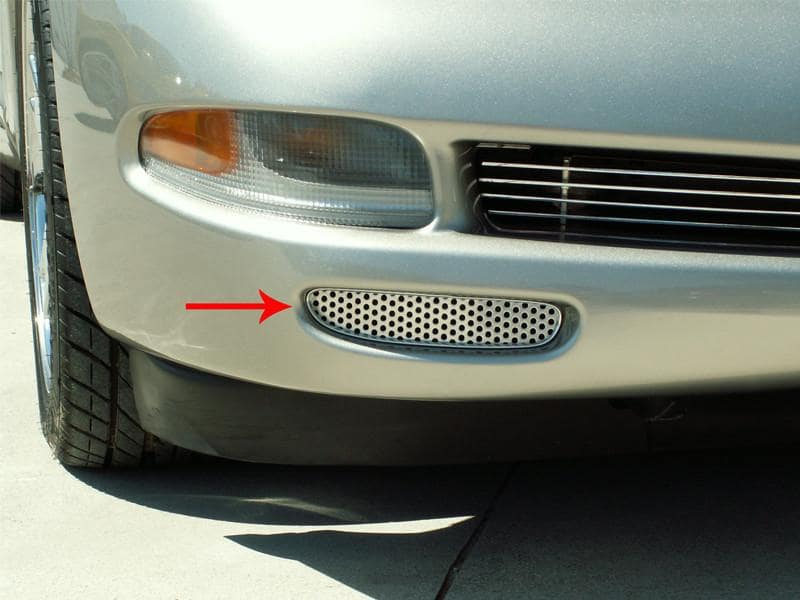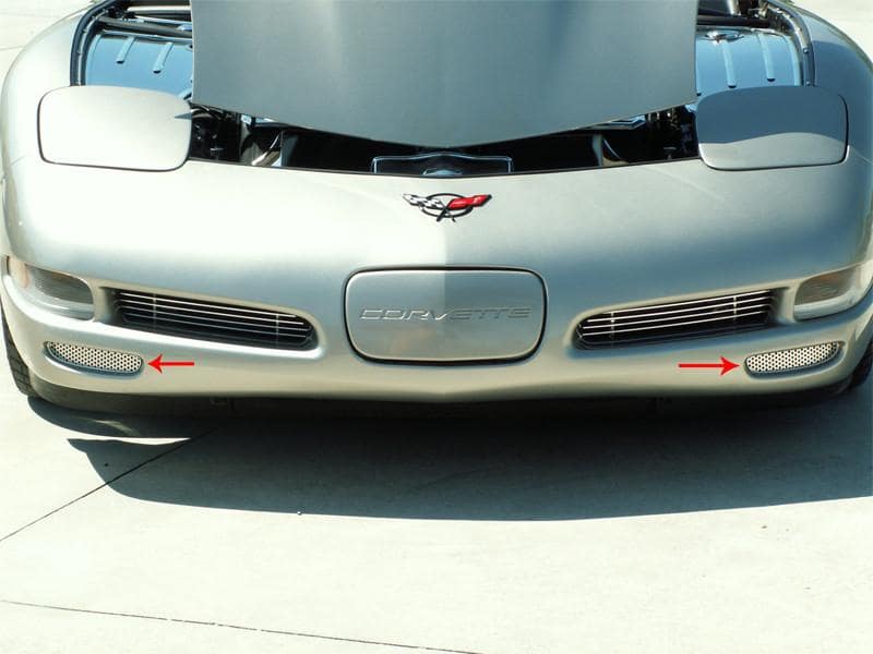 Dress up your Corvette with our Polished - Stainless Steel, Front Brake Duct Vent Grilles. These trim pieces are designed to fit all 1997-2004 Corvettes in the front brake duct vent and add a clean stylish look to your Corvette exterior. Compliments our C5 Perforated Side Vent Grilles - 032015 and our Rear Bumper Grilles - 032016.