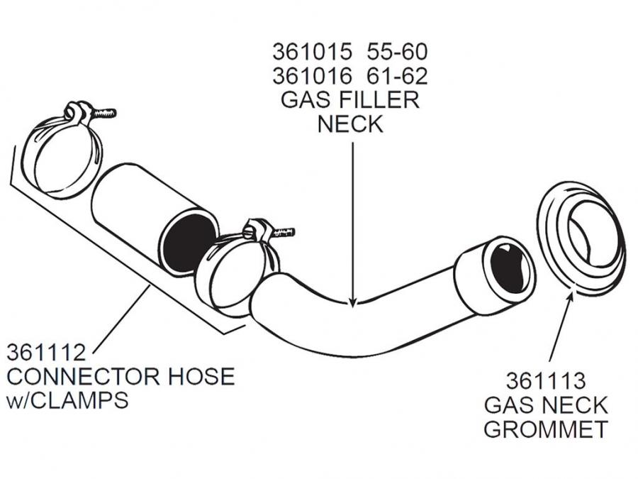53-62 Gas Tank Hose To Filler Neck Connector With Clamps: