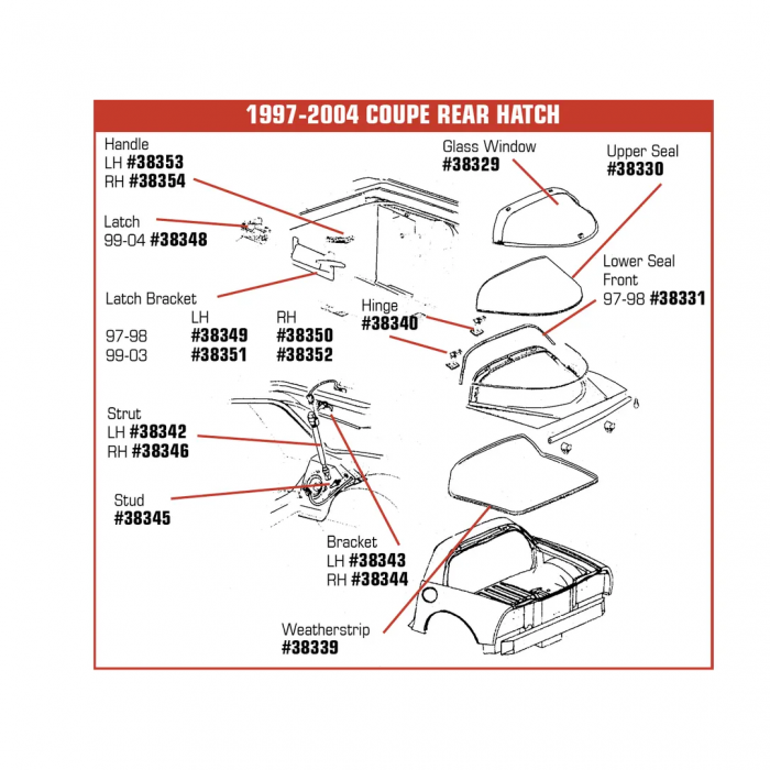 Corvette Hatch Glass Latch, 2 Required, 1999-2004: