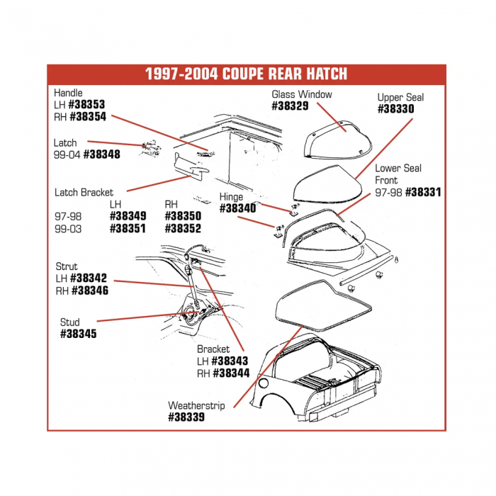 Corvette Hatch Glass Latch Bracket, Left, 1997-1998: