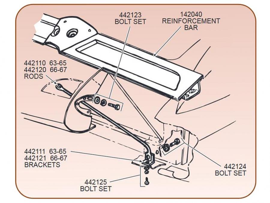 63-67 Headlight Support Rod Bracket Bolts Nose To Valance 4 Pieces