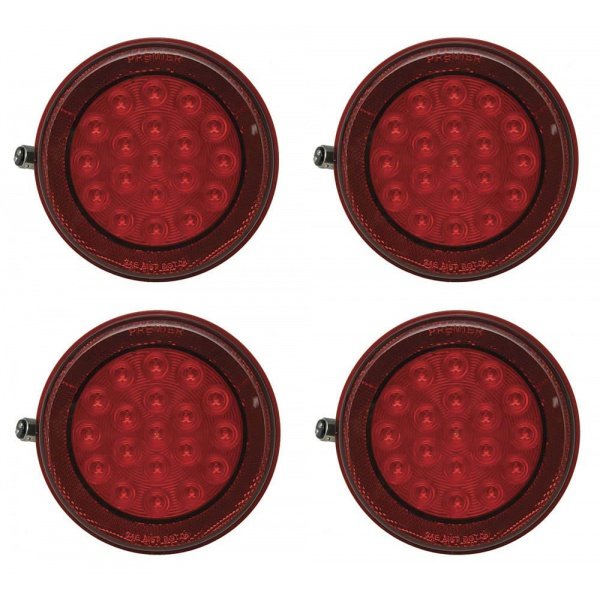 When lit, this kit provides a unique red round pattern. In addition, the 19 LED's light faster than conventional bulbs thus alerting drivers behind you sooner that you're braking or turning . The kit includes 4 taillight assemblies. Installation takes about 1-1/2 hours and requires no cutting of the stock wiring harness. The kit connects electrically with a simple plug-in bulb socket installation.