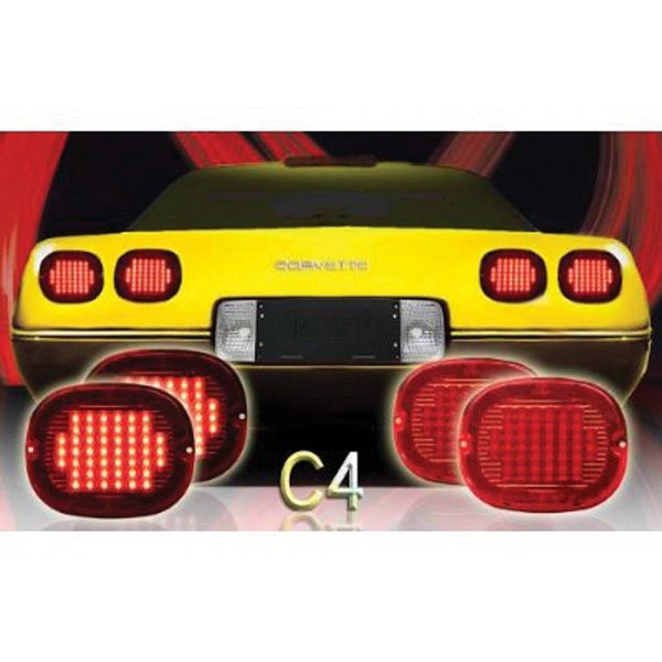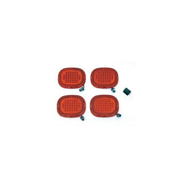 When lit, this kit provides a unique red hexagon pattern. In addition, the LED's light faster than conventional bulbs thus alerting drivers behind you sooner that you're braking or turning . The kit includes 4 LED tailllight lenses, one electronic flasher and instructions. Installation takes about 1½ hours and requires no cutting of the stock wiring harness. The kit connects electrically with a simple plug-in bulb socket installation.