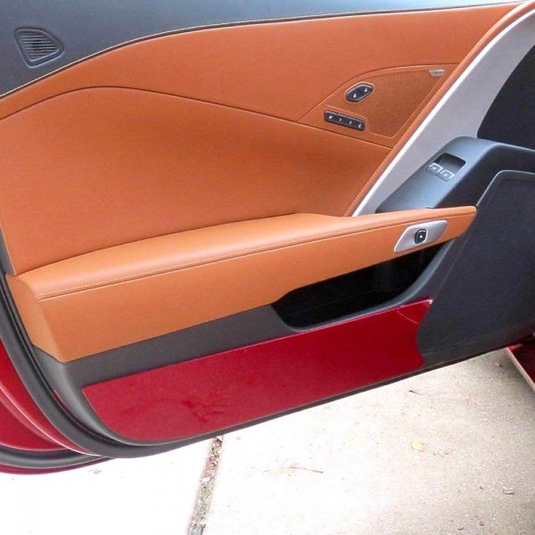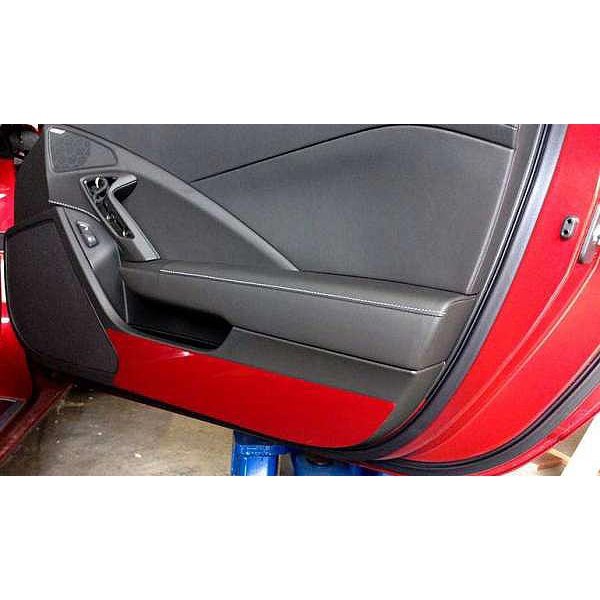 If you are looking for a unique way to add a little more flare to the inside of your then you will want to consider these custom door kick plates. These kick plates come in any C7 body color or hydro carbon fiber. These door kick plates attach with 3M adhesive tape built into the back of each piece. Sold as a set of two door kick plates. We custom paint these to order, please allow 5-10 business days for these to ship out.
