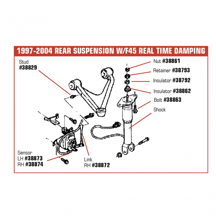 Corvette Position Sensor, Rear Right with F45, 1997-2004: