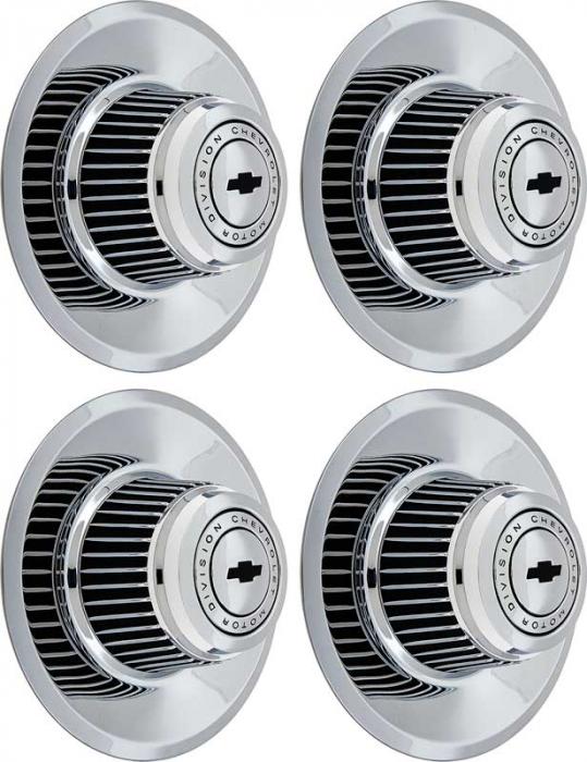 OER 4 Piece Tall Chrome Rally Wheel Derby Cap Set with Center Bow Tie *WR1012:
