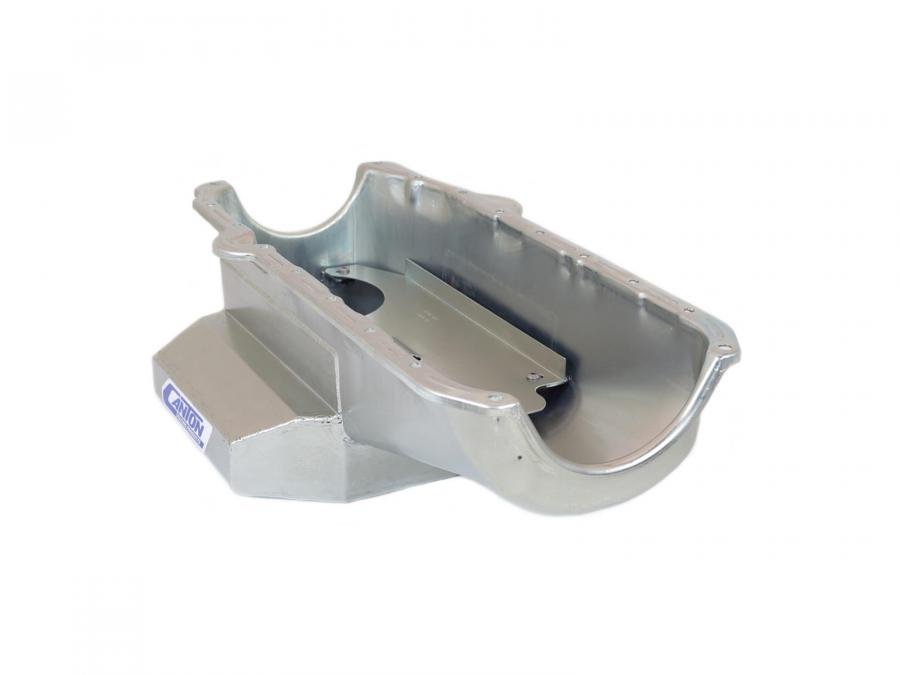 No starvation! Our road race oil pans feature their competition baffling system of trap door baffles and/or slosh baffles. These systems flow oil to the pickup compartment and then keep it from flowing or sloshing away from the pickup during turns, acceleration, and braking. Their wide, low-profile sumps deliver maximum oil capacity and ground clearance. Many pans also include provisions for an optional pan mounted dipstick and a magnetic drain plug.