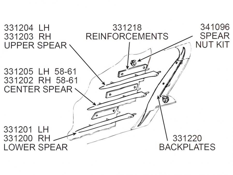58-61 Side Spear Reinforcement Plate Set - Stainless Steel: