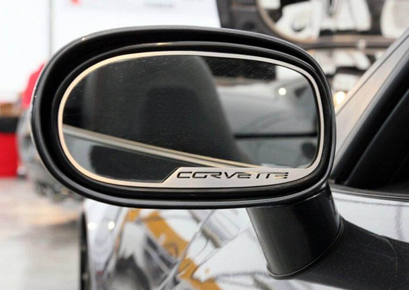 Dress up your Corvette with our Brushed Stainless Steel CORVETTE Style Side View Mirror trim. These trim pieces are designed to fit within the outer frame of the side view mirror and add a clean stylish look to your Corvette exterior. Compliments our Brushed Rear View Mirror Trim - 041034.