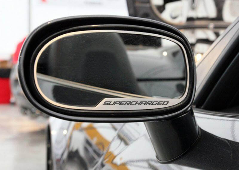 Dress up your Corvette with our brushed stainless steel laser-etched SUPERCHARGED 2-pc Side View Mirror trim kit. These trim pieces are designed to fit within the outer frame of the side view mirror and add a clean stylish look to your Corvette exterior. Compliments our brushed stainless steel C6 "CORVETTE" Style Rear View Mirror Trim (Standard) - 041033.