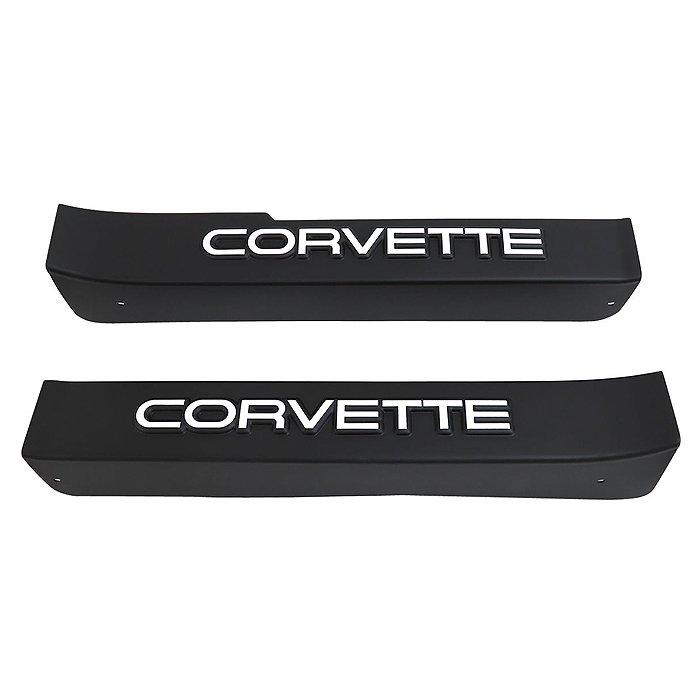 Corvette Sill Ease Protectors, Black, With White Letters, 1984-1987Corvette Sill Ease Protectors, Black, With White Letters, 1984-1987