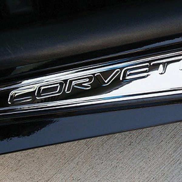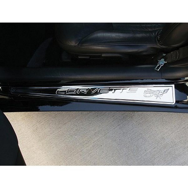 Corvette Sill Plates, Door, 50th Anniversary Logo, Chrome Plated Billet Aluminum, 1997-2004Corvette Sill Plates, Door, 50th Anniversary Logo, Chrome Plated Billet Aluminum, 1997-2004