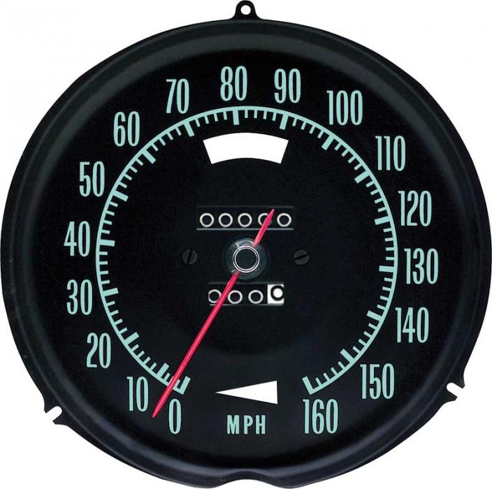 Quality reproduction of the original 160 MPH speedometer designed for use with 1968 Chevrolet Corvette models without speed warning. Each speedometer is manufactured to replicate the original in every detail including correct speedometer face with light green markings. Includes LH turn signal indicator and speed warning device. Threaded cable connection. Each speedometer is correctly calibrated bench-tested for accuracy. Will fit and function as original. Note; Refer to part number # 6492696 for 1969-71 with push on cable connection.