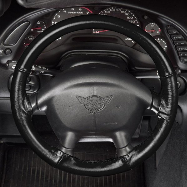 Corvette Steering Wheel Cover, Black Leather, 1986-1989