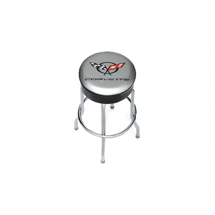 Corvette Stool, Black with Back Rest, C5R Racing Emblem